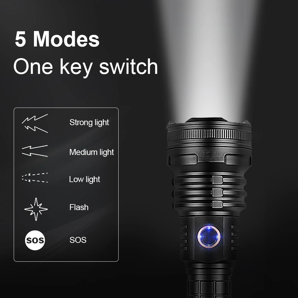 Он предлагает расстояния освещения до 600-1500 метров и различные режимы освещения fiev, идеально подходят для освещения всей комнаты или лагеря.