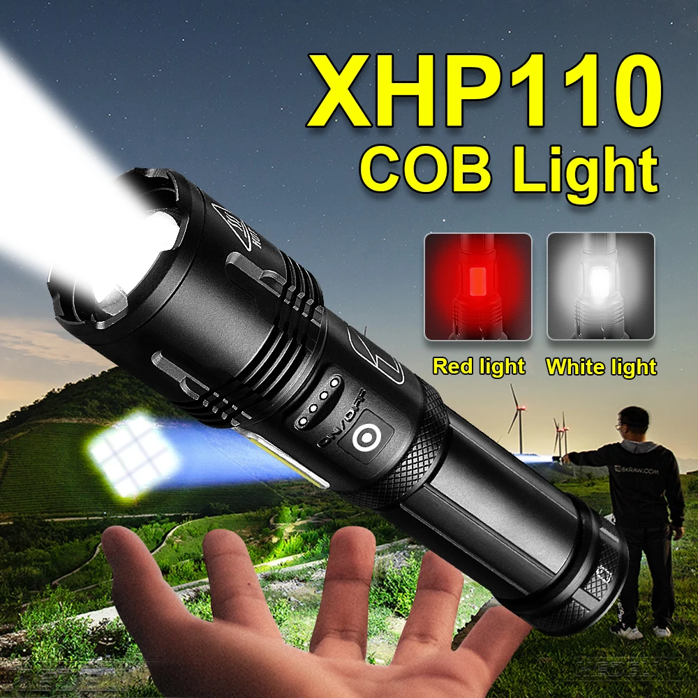 Мощный светодиодный фонарик XHP160 фонарь USB перезаряжаемая водонепроницаемая лампа ультра яркая