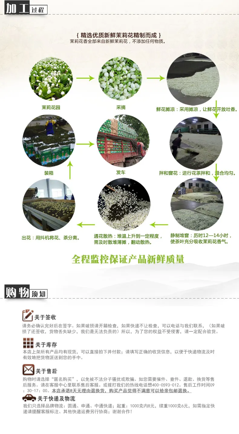 250 г свежий жасминовый чай натуральный органический Премиум жасминовый чай Дата производства; 2021 жасминовый чай, также известный как жасминовый ароматный чай, принадлежит ароматному чаю. Эмбрион зеленого чая. Готовое изделие удаляет цветок жасмина. Это также вид зеленого чая. Он имеет историю более 1000 лет. Он имеет репутацию «Лучший запах жасмина и первый аромат человеческой жизни». В династии Цин он был назван как дань и имеет историю более 150 лет. Жасминовый чай-это вид чая, который сделан путем сочетания чая и цветов жасмина, чтобы поглощать аромат цветов. Его аромат свежий и прочный, его аромат мягкий и свежий, его суп ярко-желтого зеленого цвета, а листья нежные и нежные. Жасминовый чай, который сделан из серии технологических процессов, имеет функции успокоения ума, избавления от депрессии, оживления селезенки и регулирования qi, защита от старения и Улучшение иммунитета организма. Это полезный напиток.