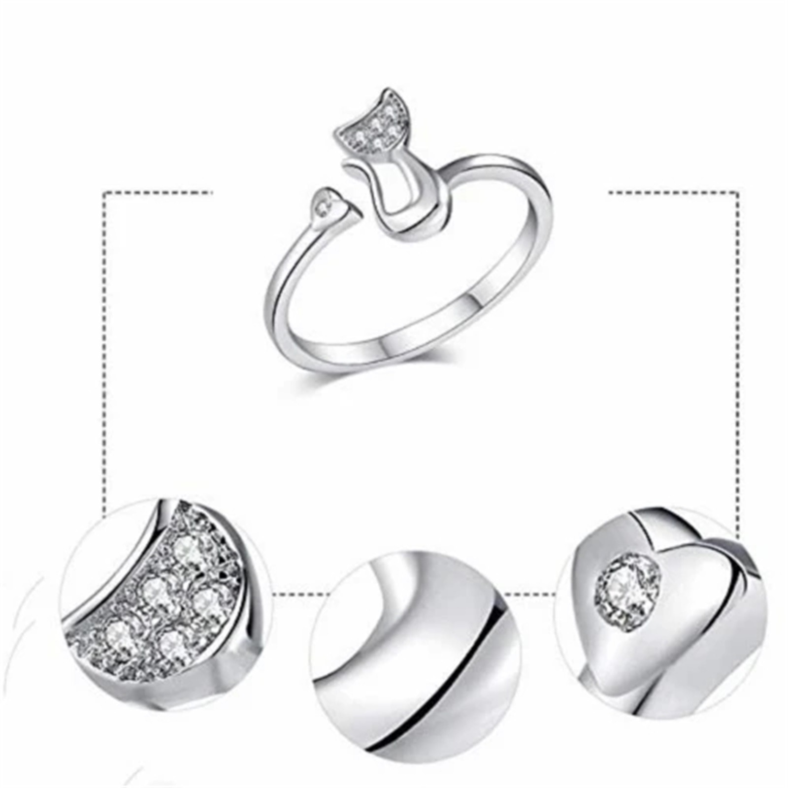 Великолепное кольцо в виде кошки с высококачественным настоящим серебром и сверкающим кристаллом, которые добавляют изысканную атмосферу для изделия. Это может стать милым подарком для вашей любимой женщины в этот новый год
