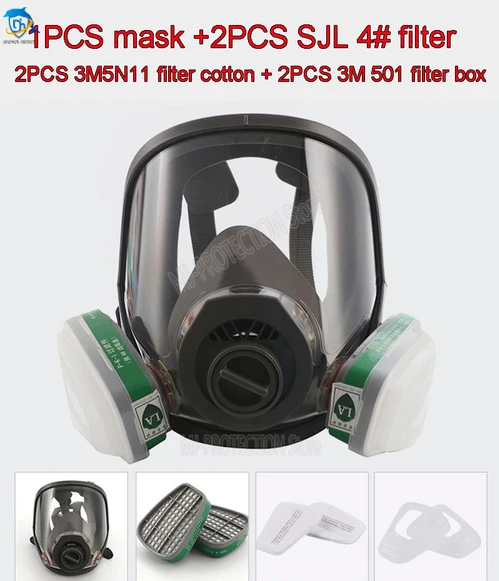 A mask=1PCS mask+ 2PCS SJL 3# filter+2PCS 5N11 filter cotton + 2PCS 501 filter cover Product features: such as benzene and homologues, gasoline, acetone, carbon disulfide, ether, chloropicrin, suitable for painting, pesticide spraying.