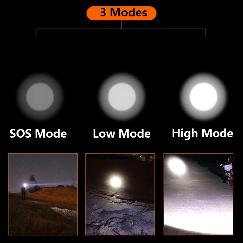 • Режим: 3 режима для передней фары (100% - 50% - SOS)