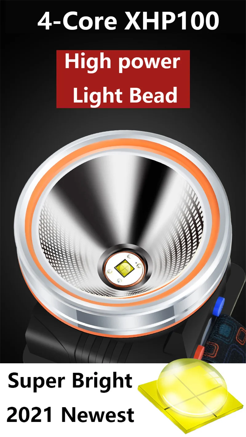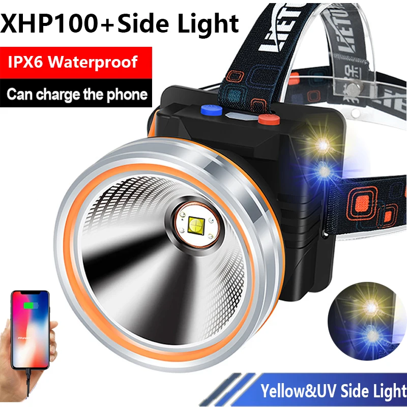 Мощный светодиодный налобный фонарь XHP100, сверхъяркий Ультрафиолетовый налобный фонарь, перезаряжаемый от USB, Ультрафиолетовый фонарь для кемпинга, лампа для улицы, 300 люмен