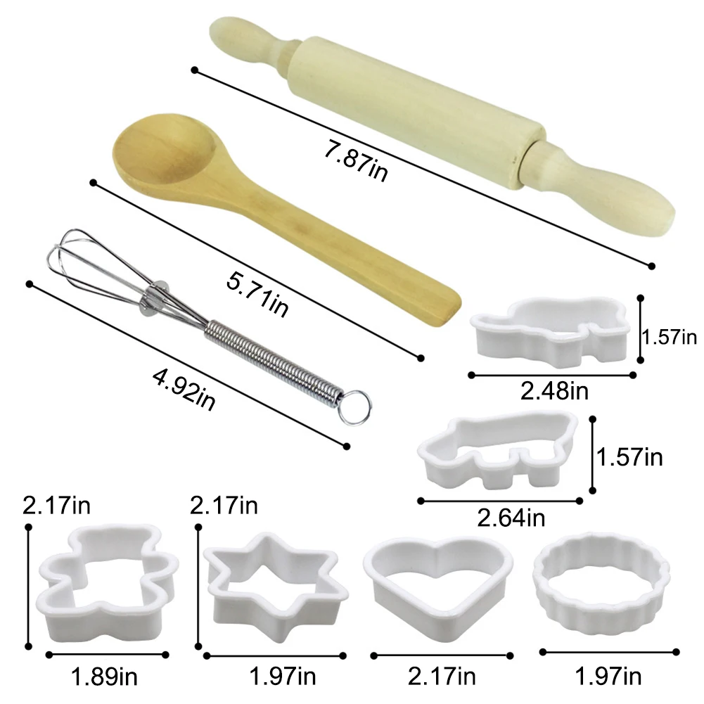 Материал детского набора для выпечки: шляпа шеф-повара эластичная, а фартук имеет регулируемый Фартук для детей-веревка. Скалка сделана из дерева. Есть 4 различных формы для печенья, которые делают детей играть в игры гораздо веселее.