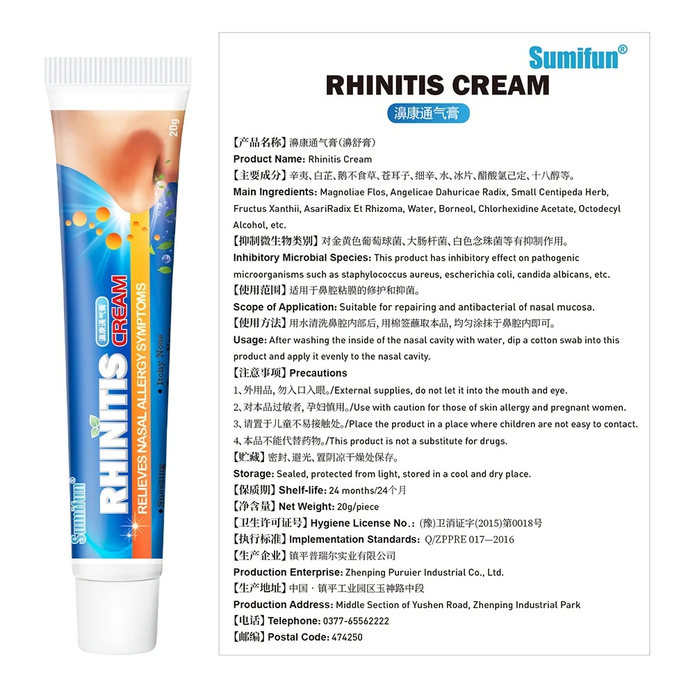 Крем от ринита и синусита Sumifun, 1 шт., Мятная заложенность носа, зуд, насморк, чихание, лечение чихания, мазь для обновления носа, холодная прохлада