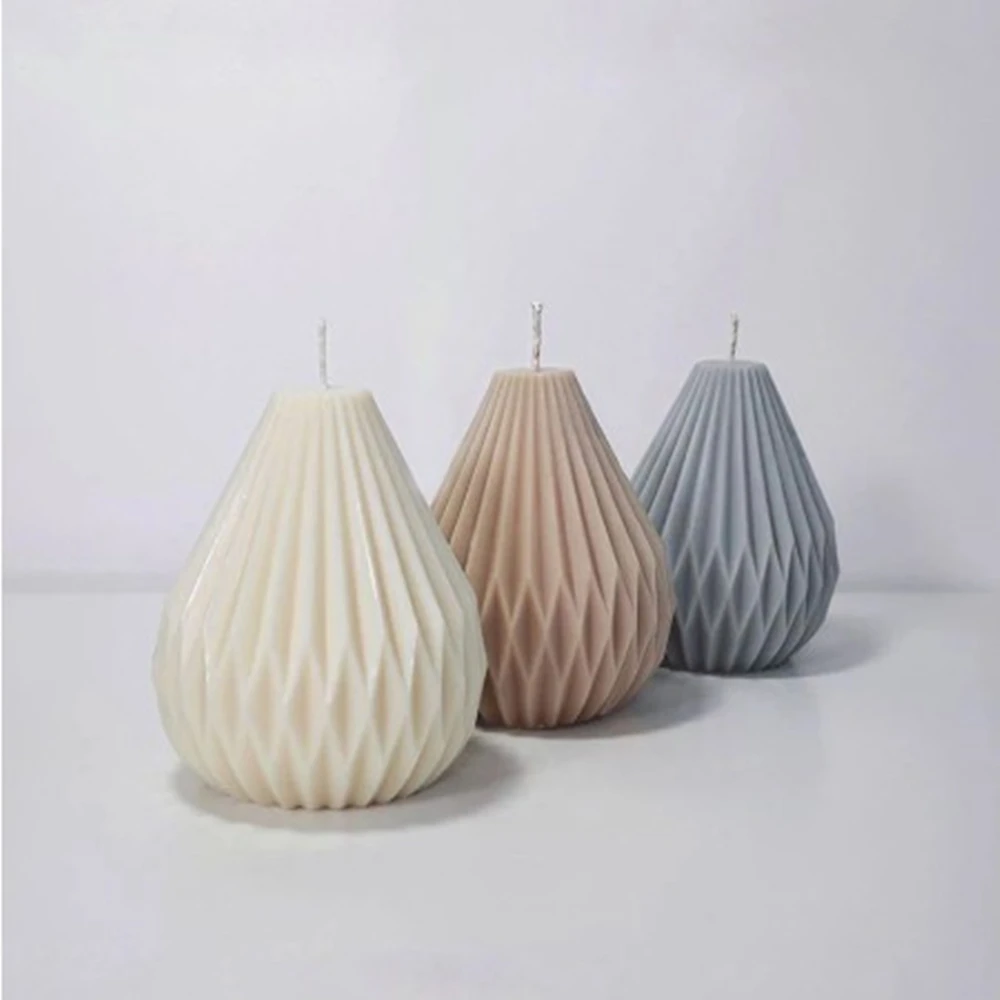 Геометрическая линия свеча форма оригами груша в форме воска силиконовая модель Простой Полосатый конус