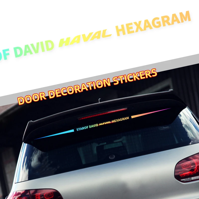 Автомобильные лазерные наклейки, виниловая пленка, автомобильная наклейка для haval f7 h6 f7x h2 h5 h7 h8 h9 m4, Светоотражающая наклейка на переднее стекло двери, особенности украшения: совместимость с кузовом автомобиля, окном автомобиля, дверью автомобиля, модный дизайн, обеспечивают высокий уровень видимости высококачественный виниловый материал, не выцветает, не трескается, Пилинг или усадка со временем не повреждают автомобильную краску, не оставляя следов клея после отклеивания характеристики: Размер: 60 см * 5,5 см Материал: винил/Светоотражающий/Лазерный цвет: черный, белый, насыщенный цвет Содержимое упаковки: 1 * стикер
