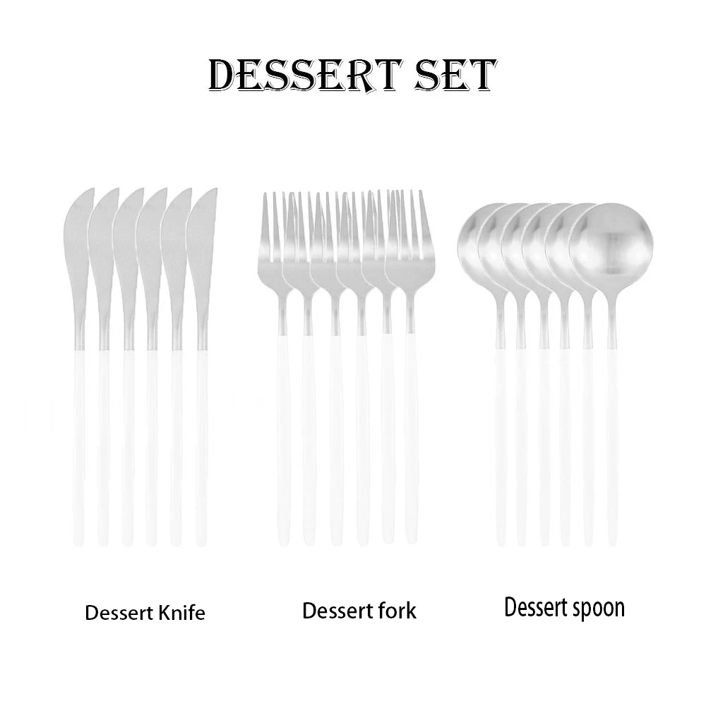 6 × длина десертного ножа: 19,2 см Флуоресцентный 6 × длина десертной ложки: 18,2 см Флуоресцентный 6 × длина вилки десерта: 18,8 см Флуоресцентный Всего 18 штук в наборе, нож для десертов + ложка для десантного десерта + вилка для десерта Флуоресцентный Упаковка: OPP мешок Флуоресцентный Качество продукции: первоклассный (410 безопасная нержавеющая сталь) Флуоресцентный Применимые случаи: свадьба, вечерние, День матери, день детей, Рождество, семья, ресторан, клуб и т. д.