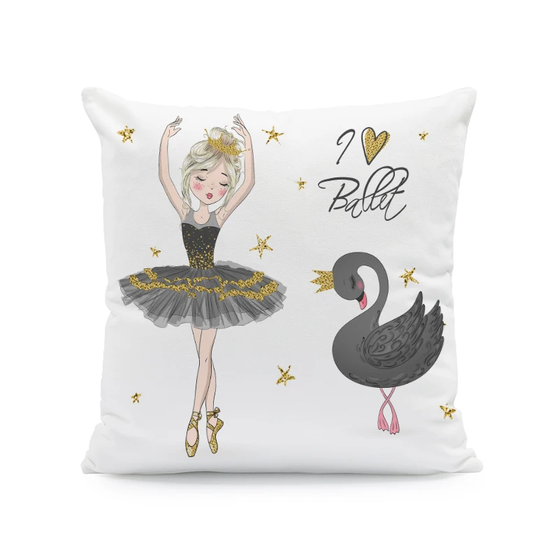 Чехол для подушки с принтом балетной девушки в мультяшном стиле, милый плюшевый декор, чехол для подушки для дома и офиса