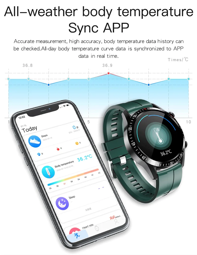 1.Please keep the watch in close contact with your wrist, and keep it wearing for more than 10 minutes when you measure body temperature, otherwise it will cause a larger error.