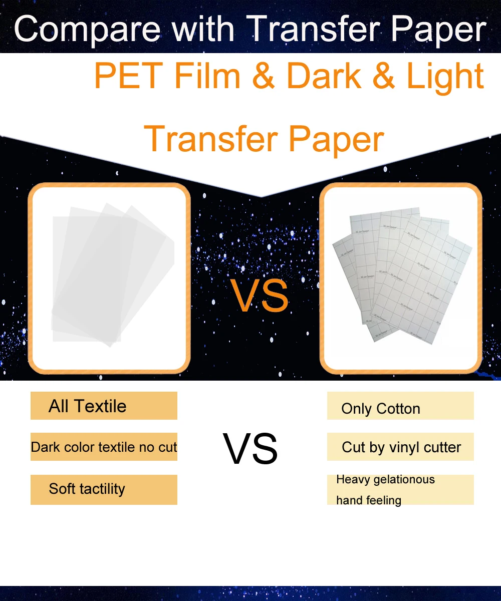 7. Нажатие. После проверки, что плавки хорошие, поместите печатную пленку на подготовленную футболку, затем положите один горячий пресс лист на пленку, затем нажмите. Температура горячего пресса составляет 160-180 ℃, время составляет 10-20 секунд. (о листах горячего прессования мы рекомендуем использовать тефлоновый лист, пергаментную бумагу или крафт-бумагу. Тефлоновый лист придает принту глянцевое покрытие, пергаментная бумага придает принту полуглянцевое покрытие, а крафт-бумага придает принту матовое покрытие.)