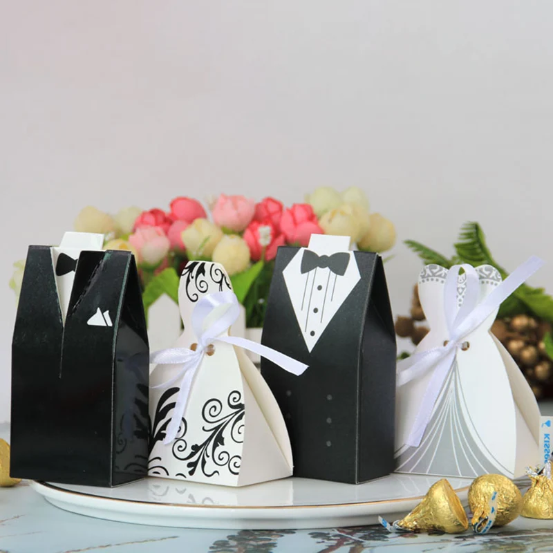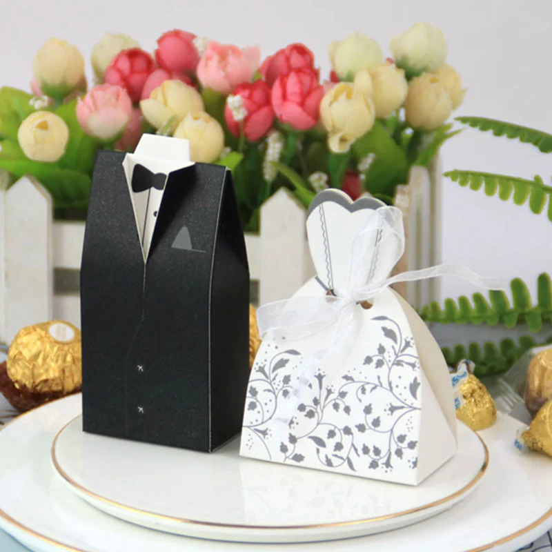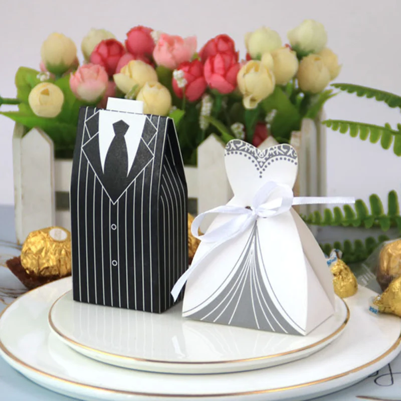 10 шт коробки смокинг + 10 шт коробки для платьев невесты (с лентой)