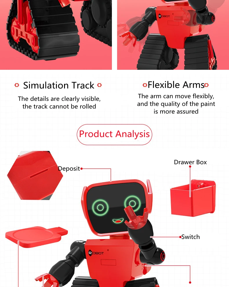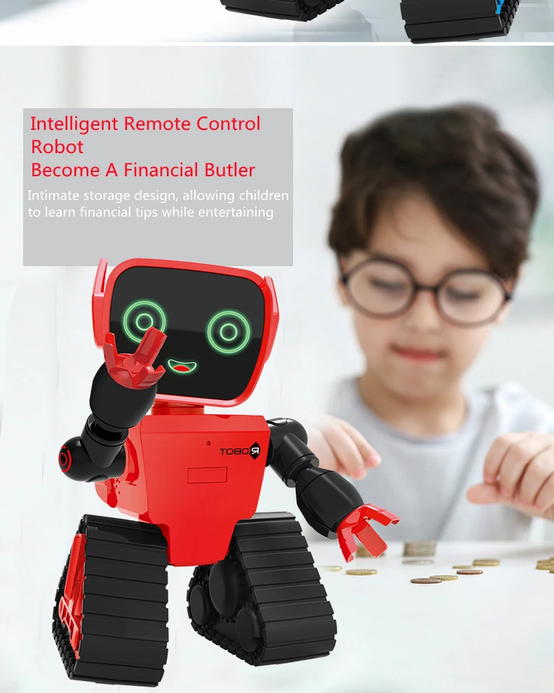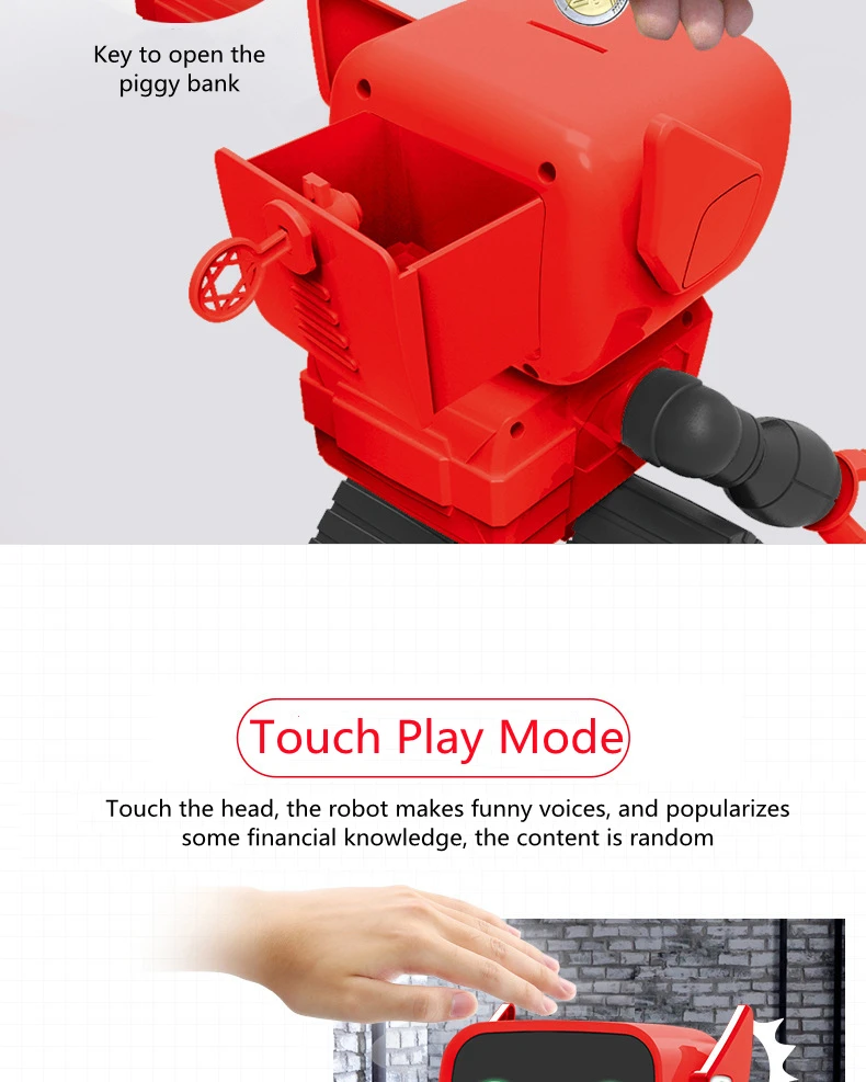 The intelligent remote control robot is transformed into a small butler of financial management. The intimate storage design allows children to learn financial management tips while entertaining