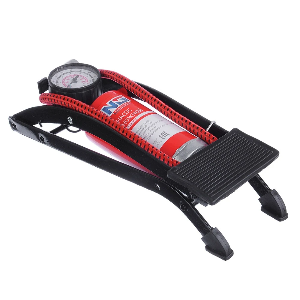 Механический ножной насос предназначен для накачивания шин легковых автомобилей, велосипедов, мячей, матрасов и других надувных изделий.