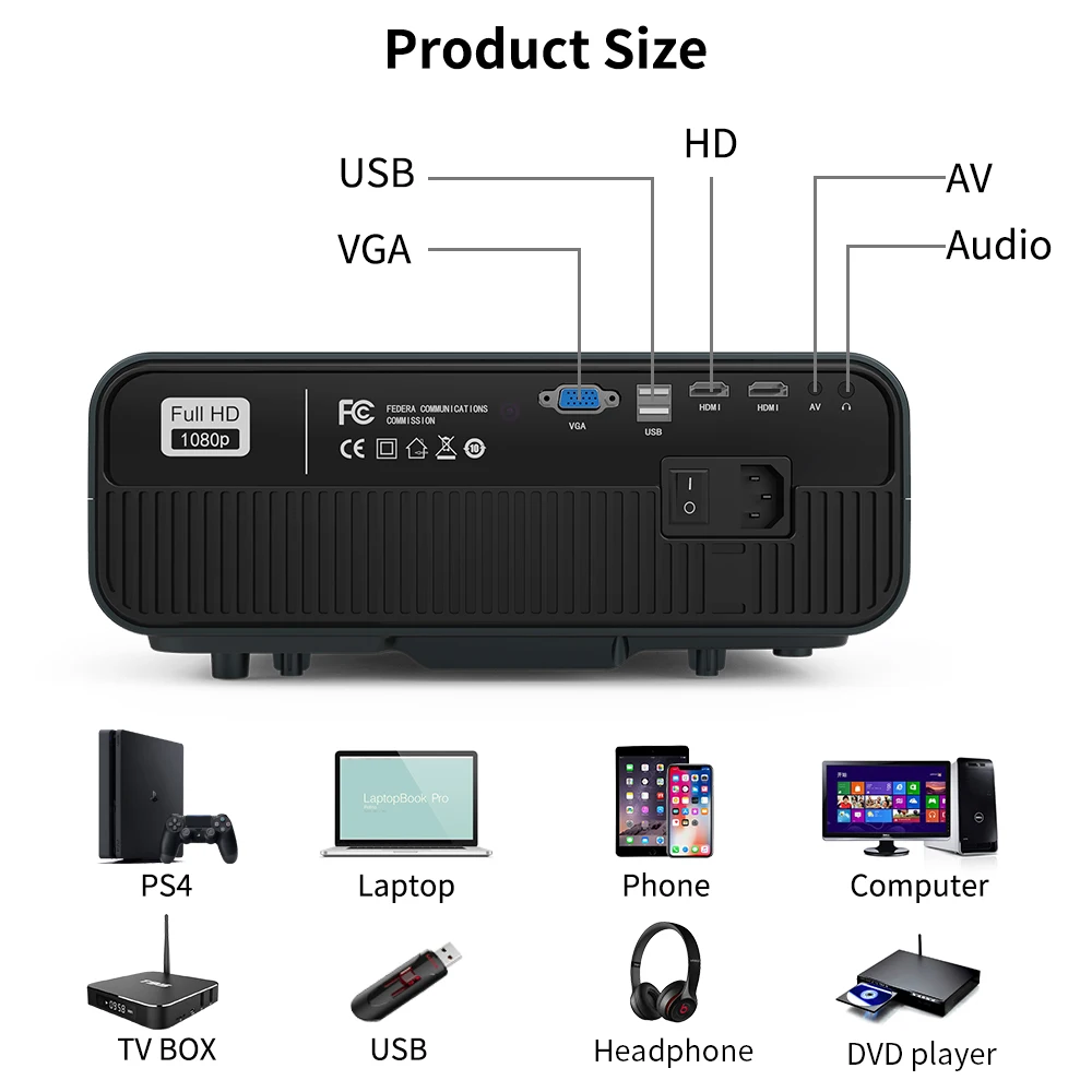 В пределах 61-200 дюймового проекционного расстояния вы получите размер изображения 6,23-20 футов, поддержка широкоформатного дисплея 16:9, регулируемое Соотношение 4:3, обеспечивает большой размер дисплея для наилучшего просмотра. Поставляется с функцией масштабирования, позволяющей уменьшить размер изображения, не перемещая проектор, и видеть больше деталей при зумировании без каких-либо искажений качества изображения.