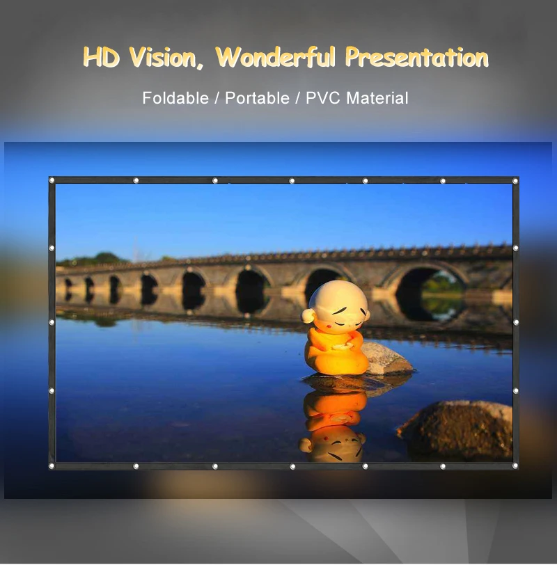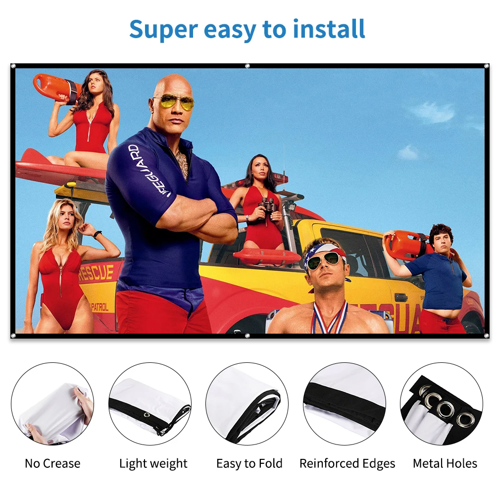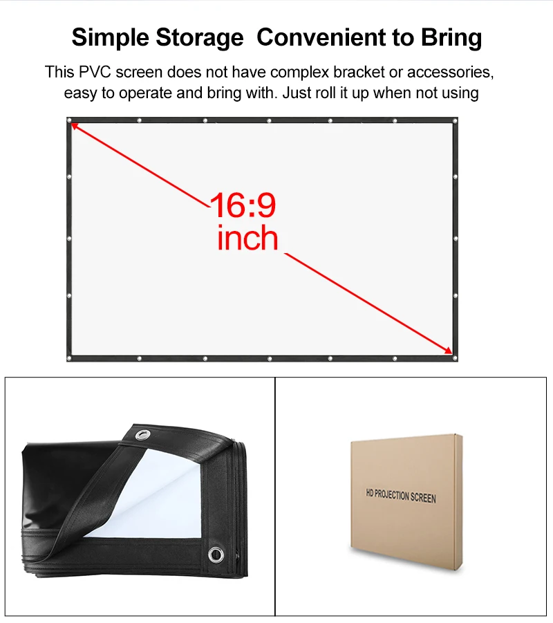 1. Портативный складной экран проектора 72 ": 100% полиэстеровый материал, с небольшим неклеевым крючком, легко устанавливается. Складной, небольшой размер упаковки, без складок, хорошая проекция 2.top-насечка просмотр exprience: идеальный 16:9 hd-проекционный экран дает безупречный опыт просмотра. Проекция Ultra HD, 2D и 3D. Угол обзора 160 градусов с черным передним проекционным экраном. 3. Возможность просмотра позволяет использовать в любых местах: дома, школе, офисе, церкви, классных комнатах, на заднем дворе; На любых площадках: презентациях, конференций, свадеб, вечеринках; Для любых развлечений: спортивных мероприятий, фильмы, сериалы, видеоигры, youtube 4. Простота установки: с 6 отверстиями на краю, Он очень прост и прост в использовании. Отверстия с металлическим кольцом, он прочный