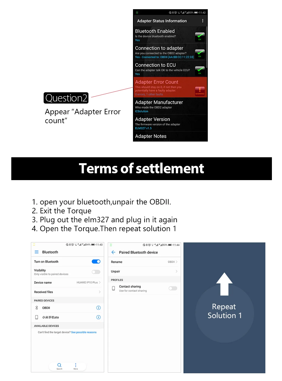 Решение: 1. Откройте bluetooth, отключите OBDII 2. Выход крутящего момента 3. Подключите elm327 и подключите его снова 4. Откройте крутящий момент. Затем повторите решение 1