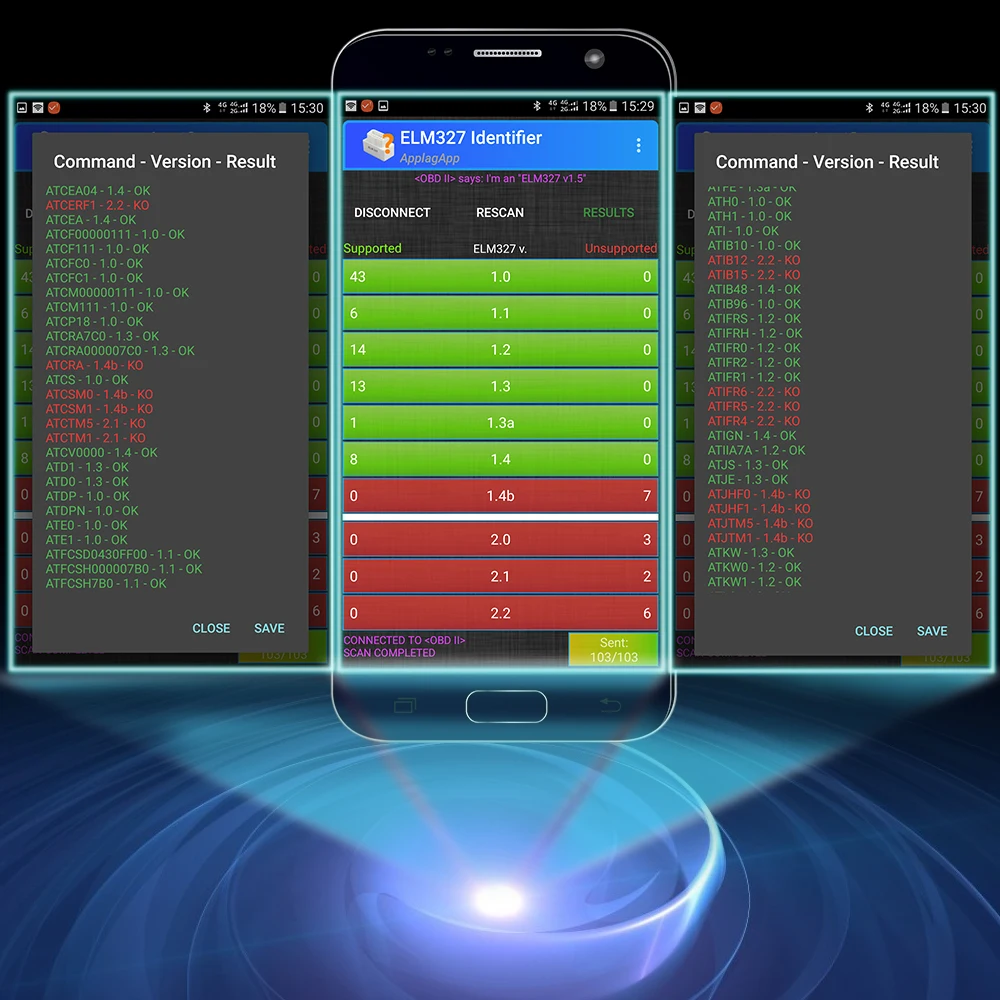 Этот ELM327 использует самую стабильную прошивку V1.5 с чипсетом PIC18F25K80 на двойных платах, чтобы fullfil большинство vehilces и функций.
