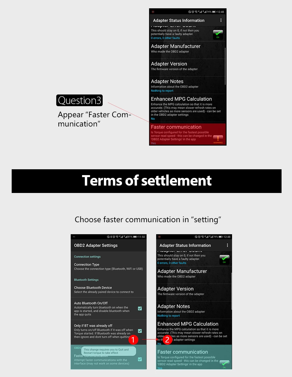 1. Это оборудование может соответствовать многим другим программным обеспечением! Но большинство из них не являются бесплатными. 2. Этот тоже не поддерживают воздушную почту столба Кита 24V дизельный или грузовых автомобилей и вы не можете использовать его на автомобилях без 16-контактный диагностический адаптер. 3. Для приложения на телефоне, мы предлагаем использовать крутящий момент. Пожалуйста, подтвердите Тип подключения как Bluetooth на настройках программы. 4. Используйте Android System V4.1 до версии V8.1. Скоро появятся другие системы. 5. Только диагностика на системе двигателя. 6. Код пары Bluetooth: 1234 7. У него нет CD, мы отправим вам qr-код или ссылки для загрузки программного обеспечения.