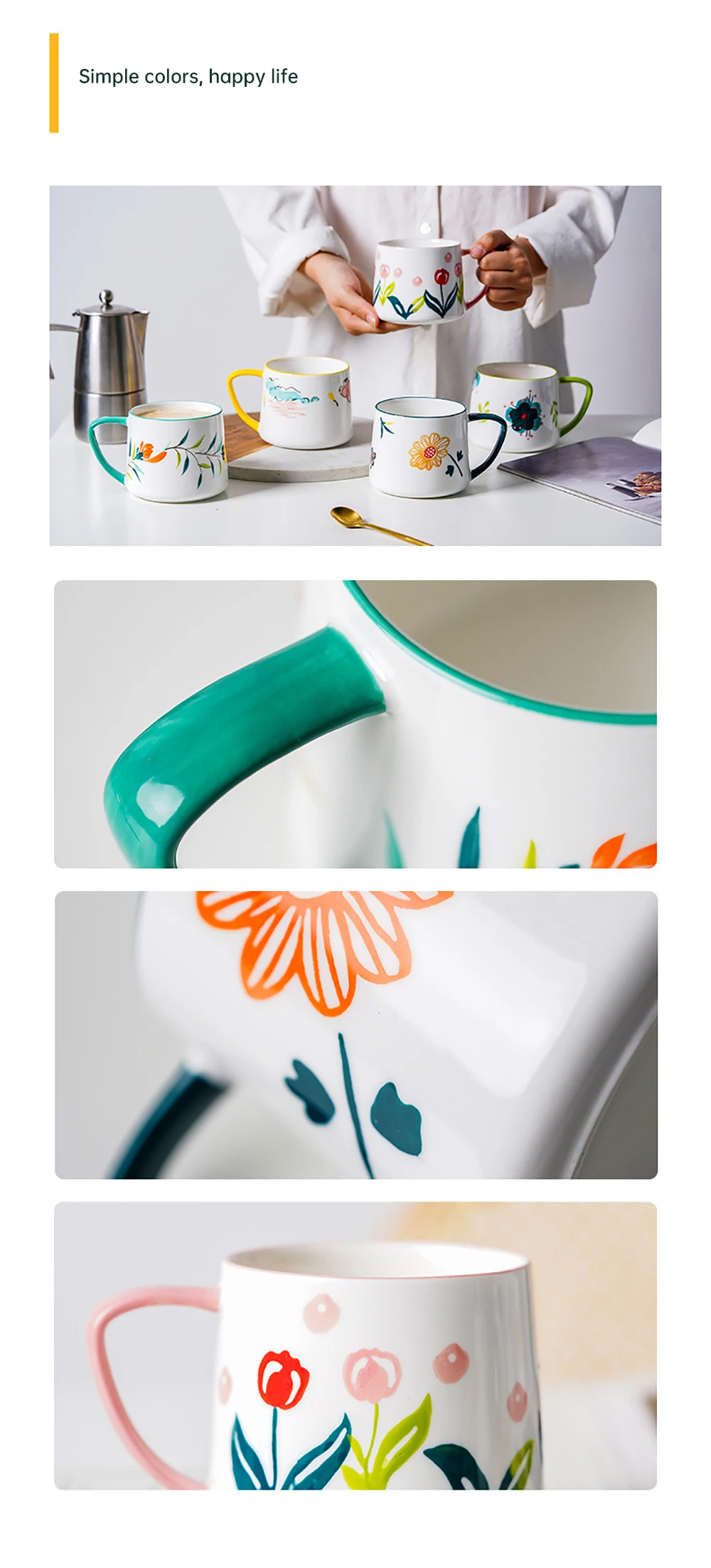 Мультяшный цветочный узор увеличивает забавную и декоративную природу чашки. Эта чашка очень подходит для домашнего использования, а емкость 10 унций также очень подходит для ежедневного питья.
