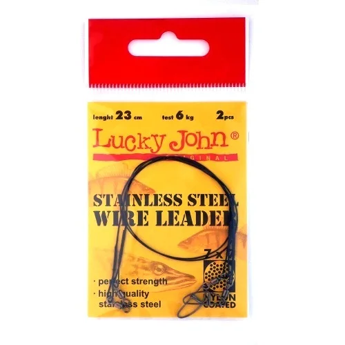 Поводки плетения 7х7, изготовлены из легированной стали и состоят из 49 переплетенных между собой стальных микропроволочек. Эти поводки очень мягки и эластичны – не жестче, чем обычная монофильная леска того же диаметра. Поводки очень стойки к всевозможным деформациям и не теряют своих свойств после мощных нагрузок в пасти крупного хищника. Поводки оснащены высококачественными вертлюгами (для соединения с основной леской) и вертлюгами с застёжками (для крепления приманки). Наличие двух вертлюгов значительно уменьшает закручивание лески.