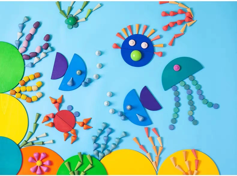 Детские деревянные игрушки Радужный блок свободные части грибные соты капельки дерево конусы творческие строительные блоки для детей