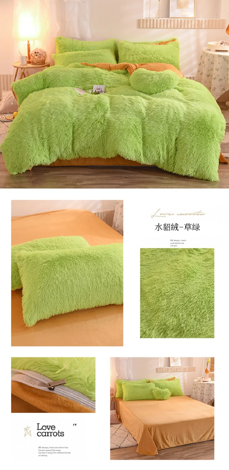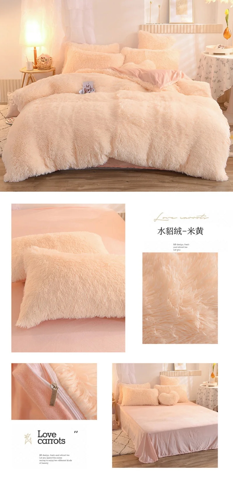 Material:Plush fabric Sheet style: Flat bed sheet Set type: Duvet cover ( With zipper ) sheet *1 , 2 pillowcases Package Includes: 1x Duvet Cover 1x flat bed sheet 2 x pillowcases size Queen Size 4pcs: ( suitable for 1.5~1.8m width bed) 1 piece Duvet Cover: 200 x 230cm(79 x 91inches ) 1 piece Bed Sheet : 245 x 250cm(96 x 98inches ) 2 pieces Pillowcases: 48 x 74cm(19 x 30inches) King Size 4pcs: ( suitable for 1.8~2m width bed) 1 piece Duvet Cover: 220 x 240cm(87 x 95inches ) 1 piece Bed Sheet : 245 x 260cm(96 x 100inches ) 2 pieces Pillowcases: 48 x 74cm(19 x 30inches) Kindly reminder *This is bedding set do not include any filling or pillow filling,the duvet cover with zipper, please open it and put same size duvet into it. if your comforter/blanket/quilt/duvet size 200x230cm so you should choose 200x230cm duvet cover. *We have made the package is tight, because long distance, when you open it please take care not cut it. thanks. Washing Instructions: *Wash in Cold Water *Mild Detergent / Non-Chlorine Bleach *Place in Dryer on a Short Cycle *Hang on a Line to Finish Drying ~~~~~ Due to the manual measurement of the size, there is an error of 1-3 cm, if you mind, please place your order carefully ! ! !