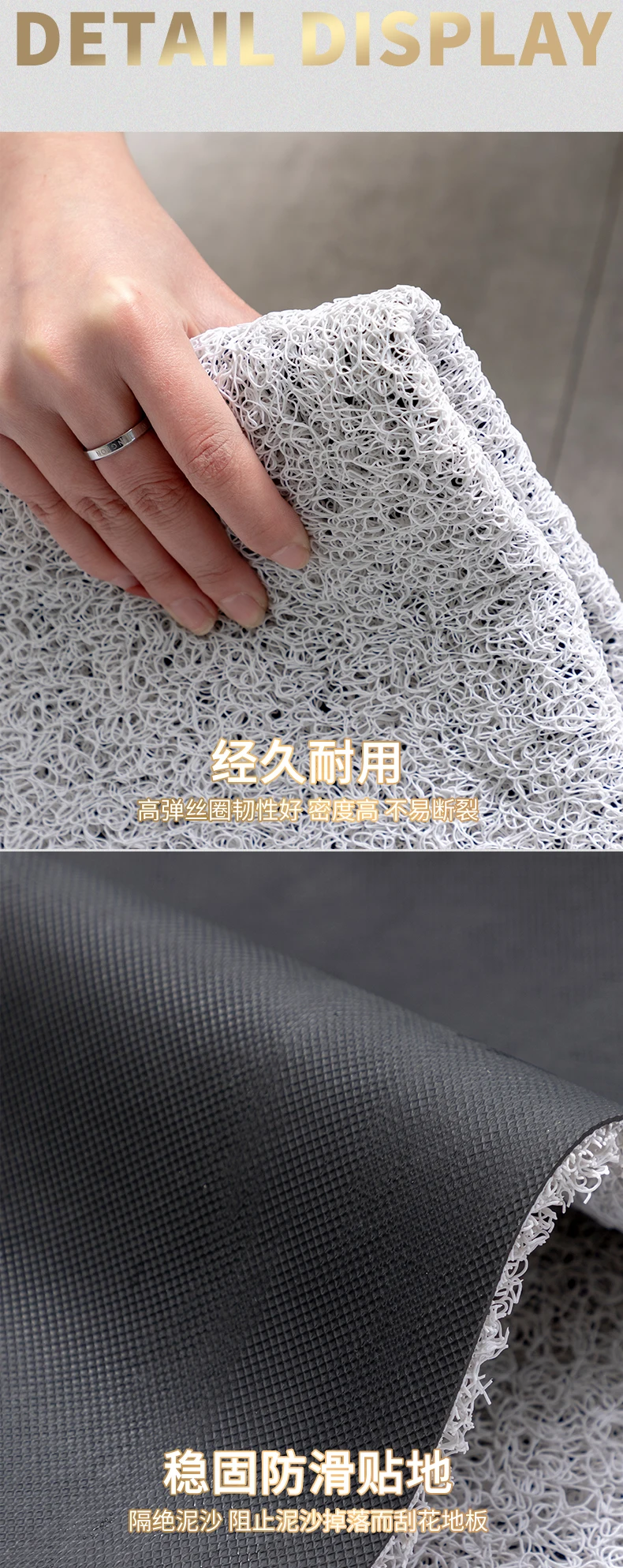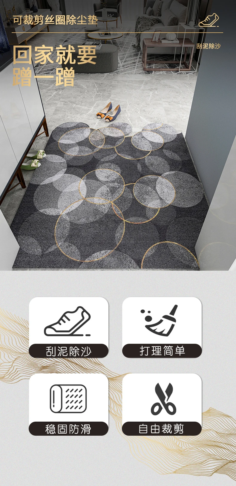 > Этот продукт может быть настроен в соответствии с размером входа, пожалуйста, свяжитесь с нами, если вам нужно настроить. > Он изготовлен из экологически чистого материала и безвреден для людей. > Подошва изготовлена из противоскользящего материала, чтобы предотвратить скольжение коврика и защитить вашу безопасность, верхний материал может поглощать влагу от обуви, чтобы сделать полы чистыми и сухими, также удалите пыль, грязь, снег и т. д. > Его можно свободно разрезать на любые формы, которые вы хотите, и он подходит для внутреннего и наружного входа, прихожей, гостиной, спальни, ванной комнаты и т. д. > Толщина составляет около 8 мм, он может полностью лежать на полу и не будет мешать открыванию и закрытию двери. > Когда он заполнен частицами грязи, вы можете просто очистить его с помощью пылесоса, или вы можете использовать садовый шланг в краску, а затем позволить ему полностью высохнуть на воздухе перед следующим использованием.