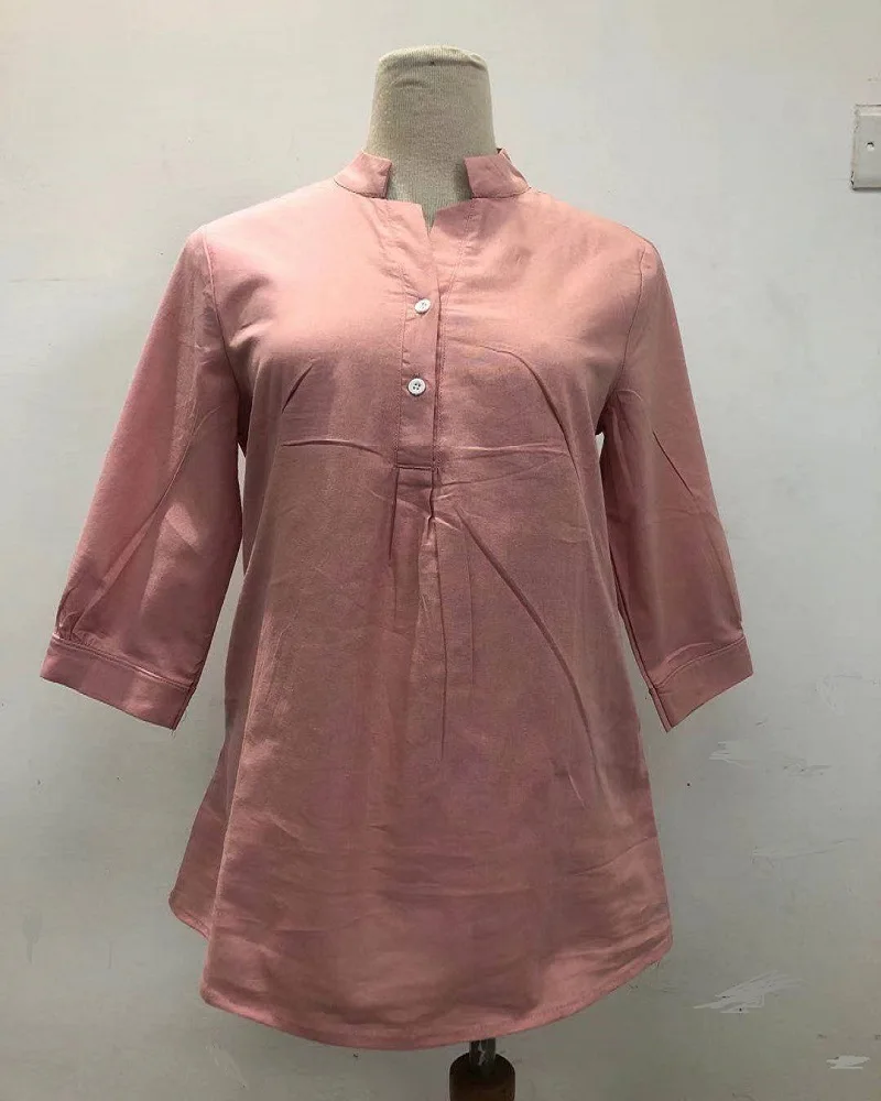 Женская Свободная блузка из хлопка и льна, базовая однотонная повседневная одежда с рукавом до локтя, S-5XL