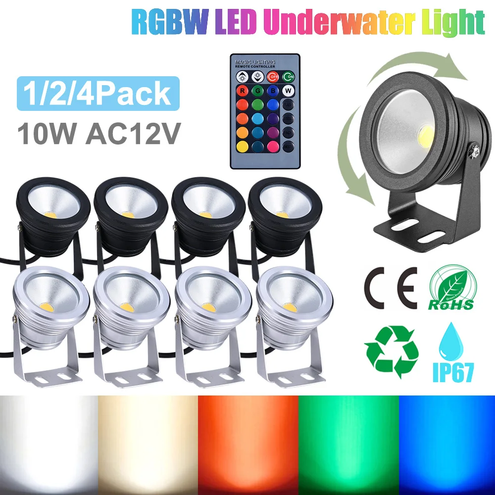 10 Вт 12 В RGB светодиодный подводный прожектор светильник многоцветный Регулируемый водонепроницаемый наружный пруд фонтан светильник 16 цветов меняющий погружной Светодиодный прожектор с регулировкой яркости светильник с пультом дистанционного управления для ландшафтного фонтана аквариума сада бассейна Домашний Светильник ing