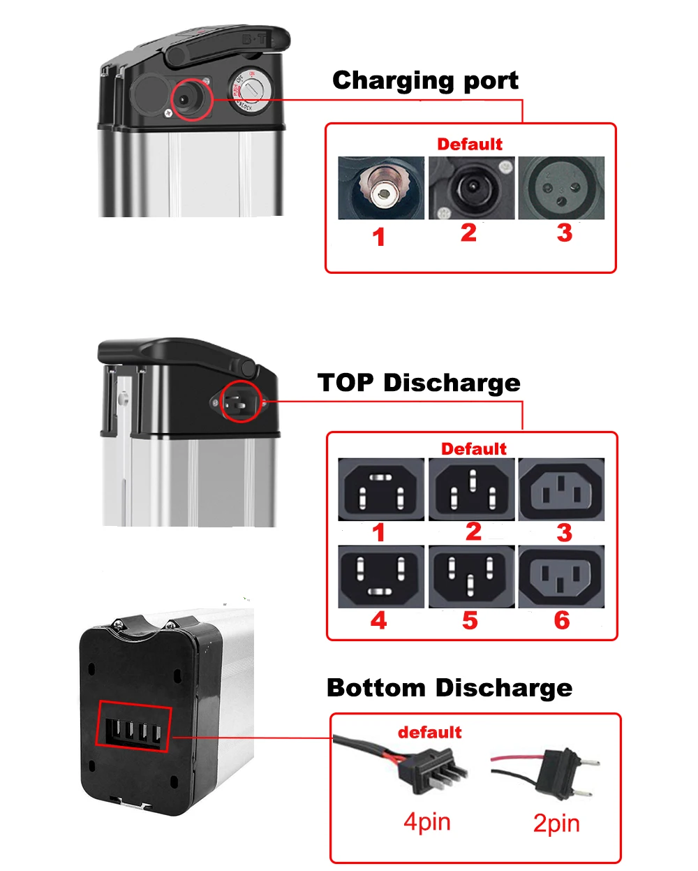 Эта батарея имеет три типа разряда: 4-контактный нижний разряд (-+ +) , 2-контактный нижний разряд (+ -) и 3-контактный на верхней стороне,Тип по умолчанию-4-контактный нижний разряд.