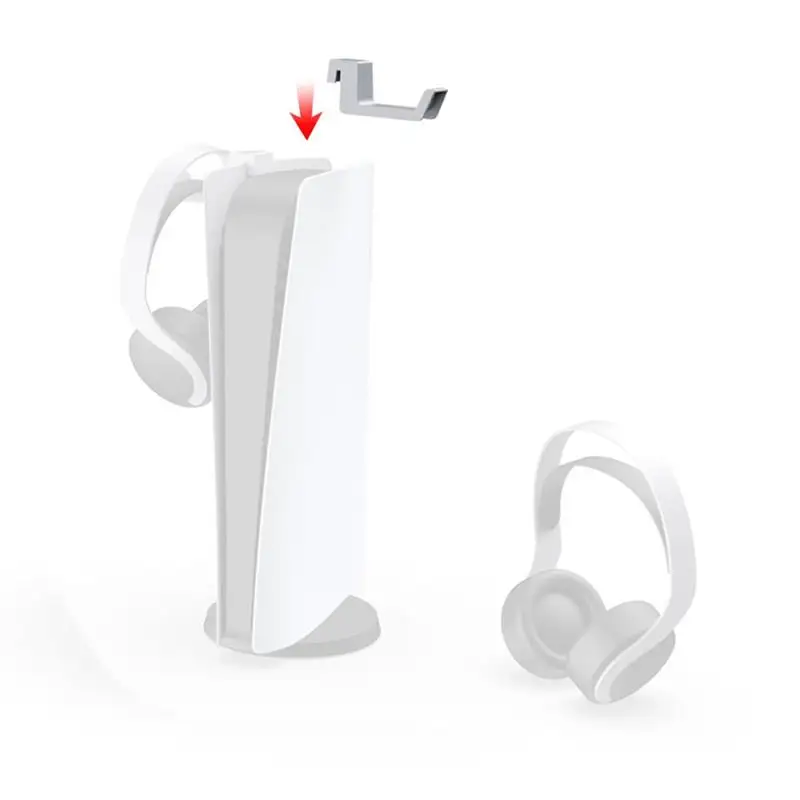 1. Разработан специально для серии PS5: Подключите кронштейн к консоли (совместим с консолью и контроллером PS5 Edition). Вы сможете разместить Любимое устройство гарнитуры.
