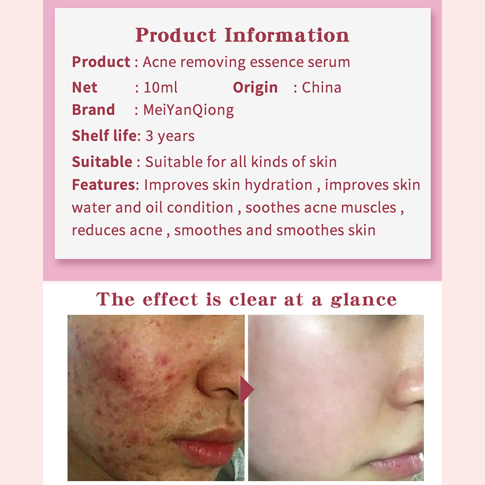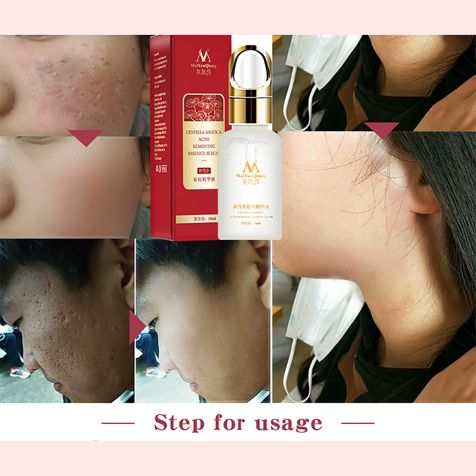 Как использовать:После очищения лица и освежения нанесите необходимое количество эссенции угрей равномерно на область угрей лица, оплатите ее до впитывания.