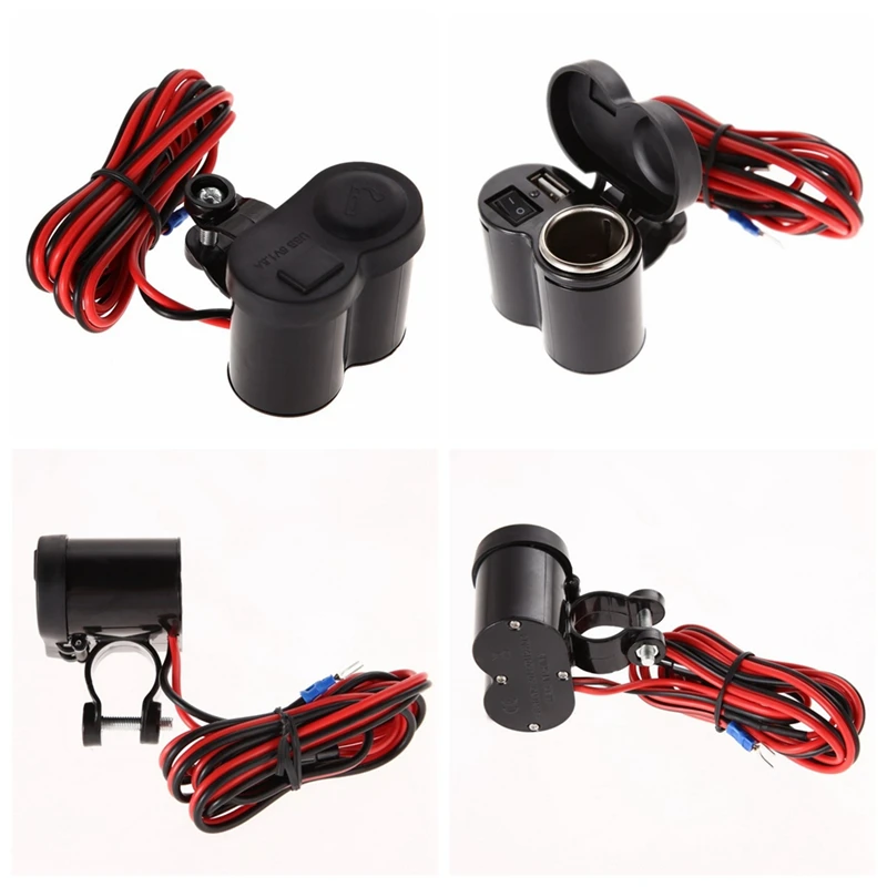 Новый универсальный 12-24V водонепроницаемый автомобильное зарядное устройство Мотоцикл Скутер Руль USB зарядное устройство зажим с USB Сигарета светильник