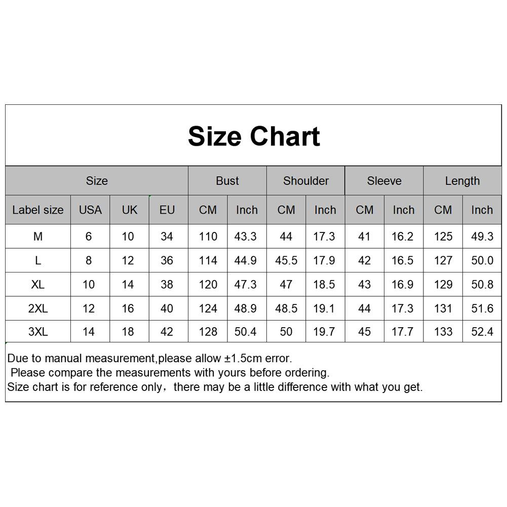 [Наш Размер 3XL] Обхват груди: 128 см/50,4 дюйма, ширина плеч: 50 см/19,7 дюйма, длина рукава: 45 см/17,7 дюйма, длина: 133 см/52,4 дюйма (прибл.)