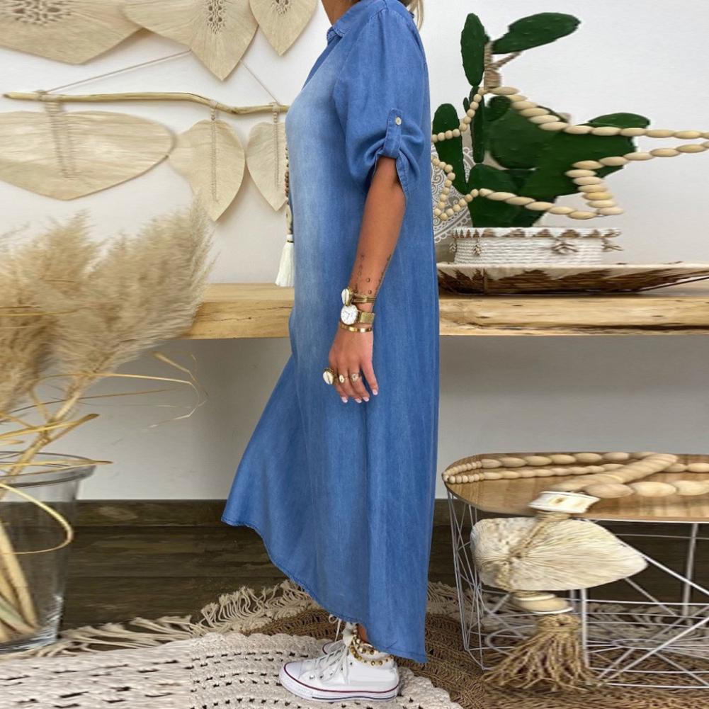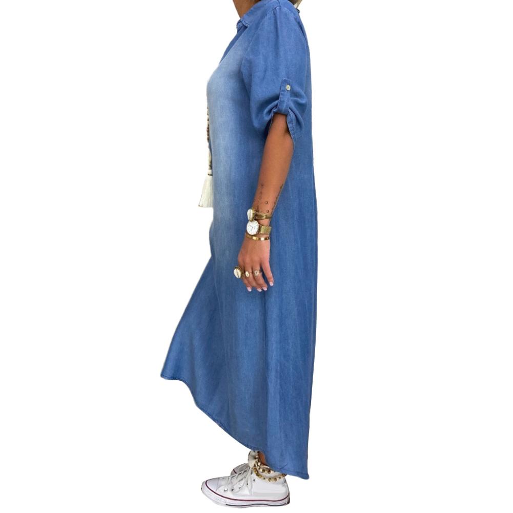 Женская новая модаВинтажное Летнее Длинное джинсовое платье с v-образным вырезом и рукавом до локтя размера плюс