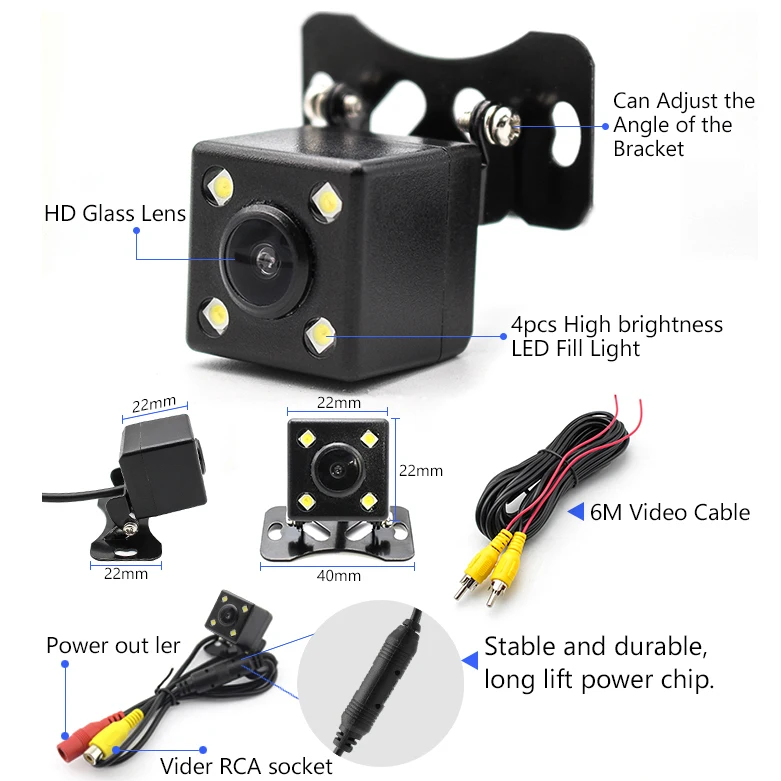 Высокая степень водонепроницаемости: IP68. Высокое разрешение и угол обзора 170 градусов. Подходит для различных транспортных средств: автомобилей, грузовиков, RV и т. д. легко установить. Простой и скромный дизайн и маленький размер не привлекают внимания. Это помогает избежать несчастных случаев и ссадин. Высота направляющей линии, направление зеркала и система могут быть изменены с помощью пульта дистанционного управления.