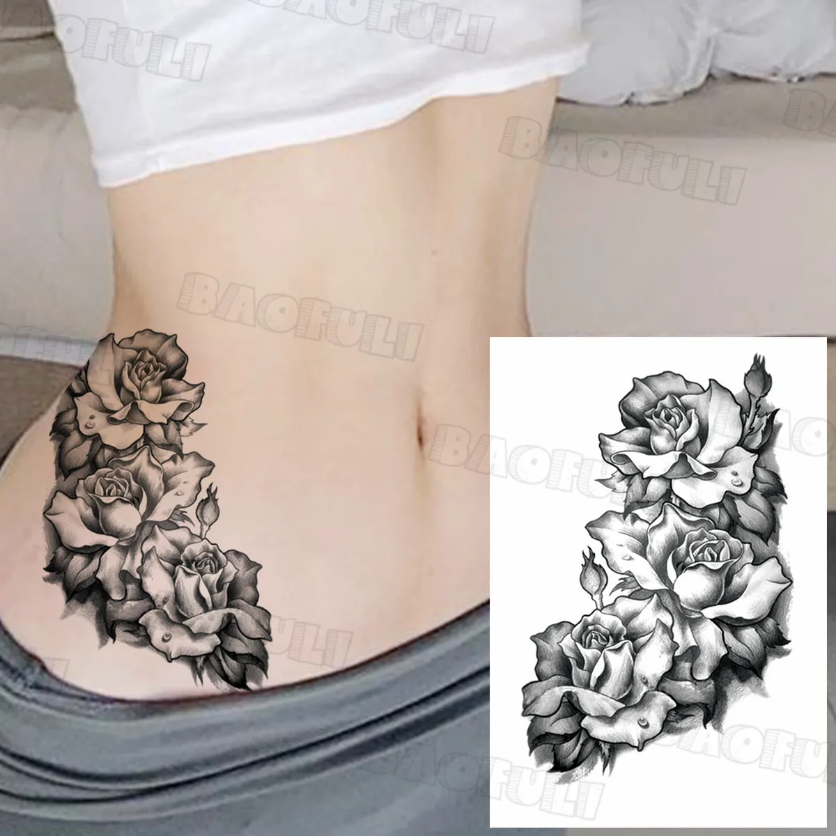 Сексуальная Акварельная Роза, временные татуировки для женщин, для взрослых, имитация тигра, пистолет, слон, подвеска, тату, наклейка, переводная татуировка