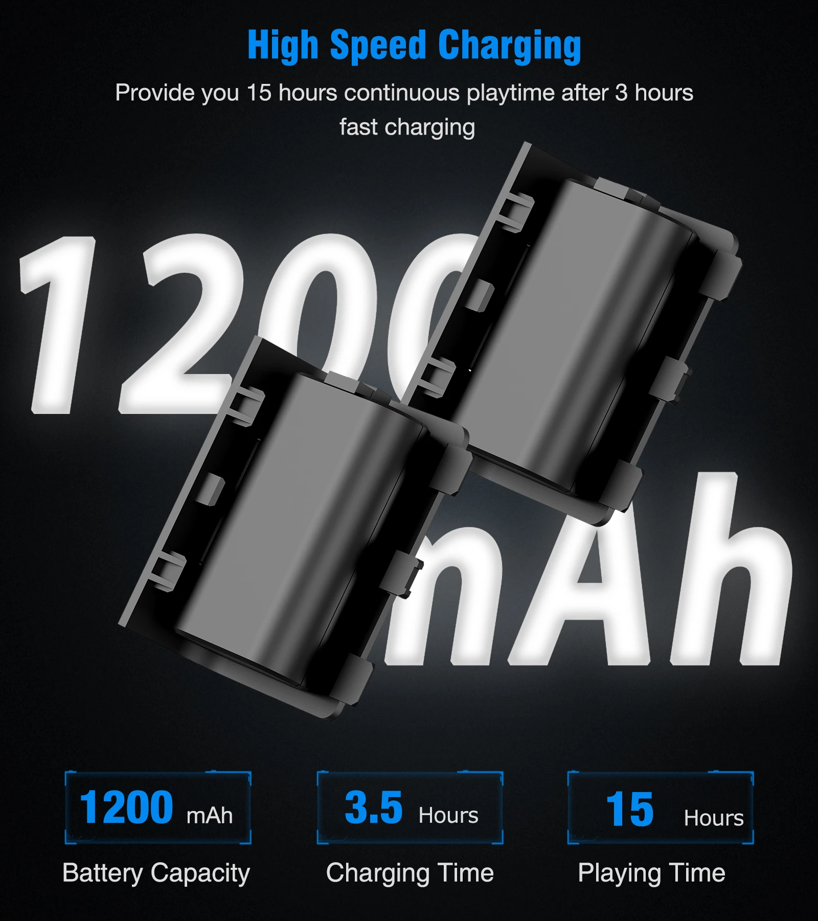 【Высокоскоростная зарядка 】Просто нужно взять 3,5 часов для полной зарядки 2 батареи пакеты для xbox one для xbox One/серия S /X, 8-10 часов непрерывной работы. Быстрая зарядка и долгое время игры! Зарядная док-станция для Xbox серии S /X / One с аккумулятором, перезаряжаемой для контроллера Xbox one, не нужно покупать дополнительный аккумулятор для Xbox, Экономьте свои деньги!