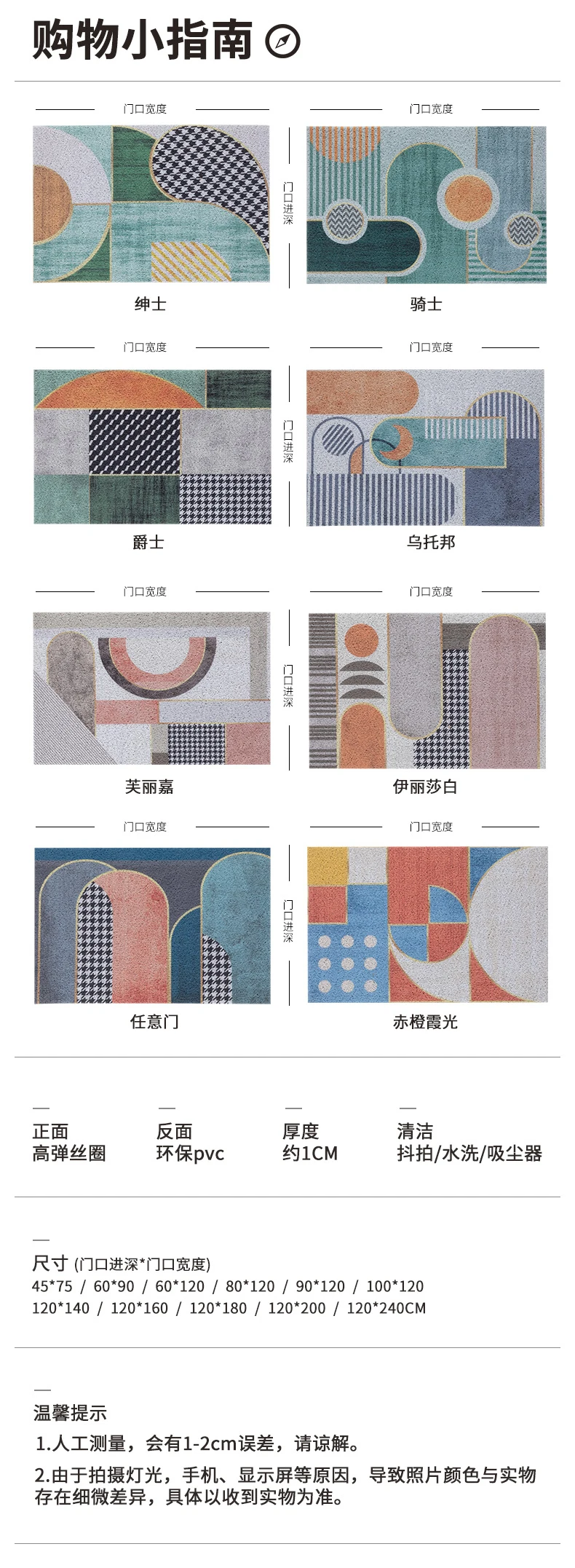 > Этот продукт может быть настроен в соответствии с размером входа, пожалуйста, свяжитесь с нами, если вам нужно настроить. > Он изготовлен из экологически чистого материала и безвреден для людей. > Подошва изготовлена из противоскользящего материала, чтобы предотвратить скольжение коврика и защитить вашу безопасность, верхний материал может поглощать влагу от обуви, чтобы сделать полы чистыми и сухими, также удалите пыль, грязь, снег и т. д. > Его можно свободно разрезать на любые формы, которые вы хотите, и он подходит для внутреннего и наружного входа, прихожей, гостиной, спальни, ванной комнаты и т. д. > Толщина составляет около 8 мм, он может полностью лежать на полу и не будет мешать открыванию и закрытию двери. > Когда он заполнен частицами грязи, вы можете просто очистить его с помощью пылесоса, или вы можете использовать садовый шланг в краску, а затем позволить ему полностью высохнуть на воздухе перед следующим использованием.