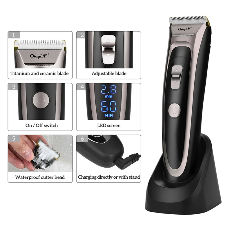 Профессиональная машинка для стрижки волос Для мужчин Парикмахерская Машинка для стрижки бороды и усов; Керамика лезвие светодиодный Перезаряжаемые резки низкая Шум для взрослых и детей стрижка 50