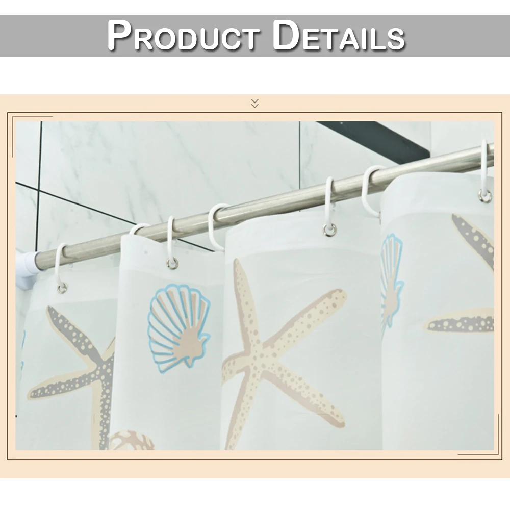 ВодонепроницаемыйПЭваЗанавеска для ваннойМорская звездаШторыСКрючки6Размеры (Цвет: Белый)