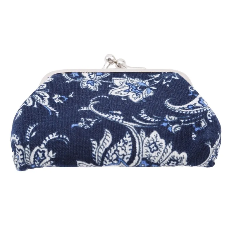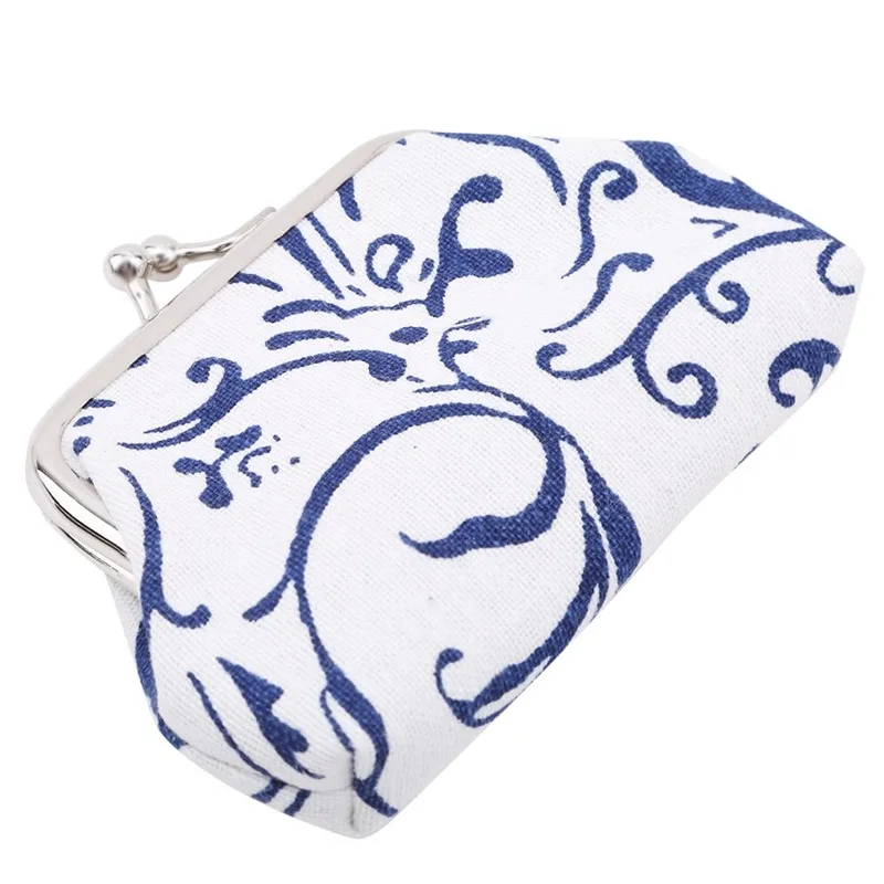 Для женщин портмоне в ретро-стиле, белоснежно-белого и синего цвета, сумка для монет в китайском стиле ключи, монеты кошелек женский классический принт креативный кошелек