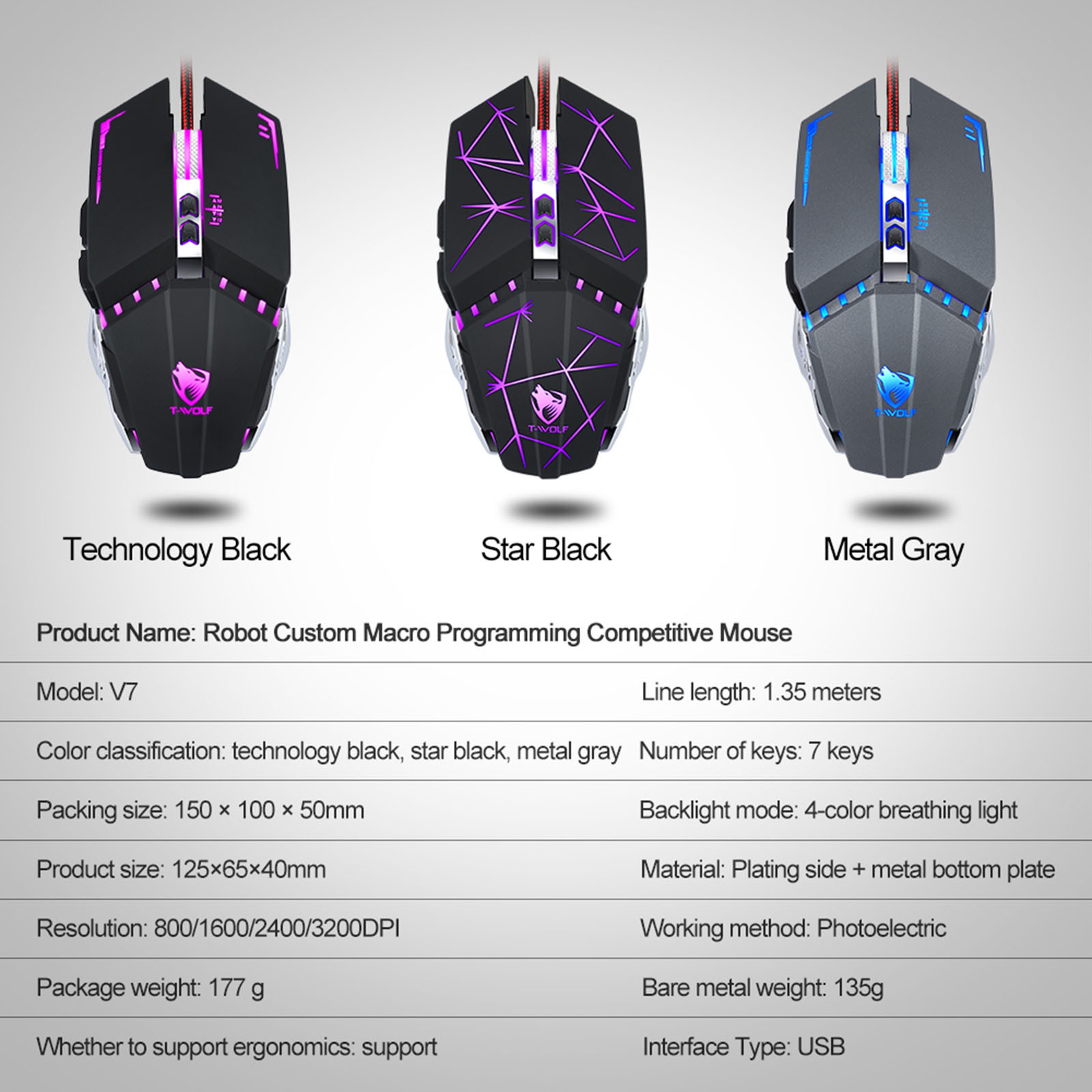 Thunder Wolf V7 проводная мышь Механическая игра компьютерная электронная гоночная лошадь