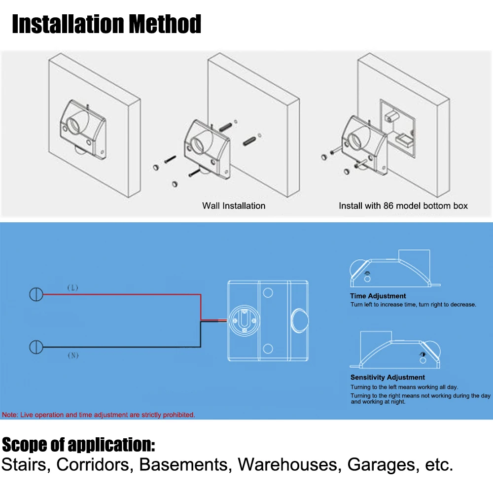 3. Этот переключатель может быть непосредственно закреплен на стене, а также подходит для установки на нижней коробке переключателя 86 типа. Высота установки составляет 2 м-3 м, и она может быть установлена или установлена на поверхности.