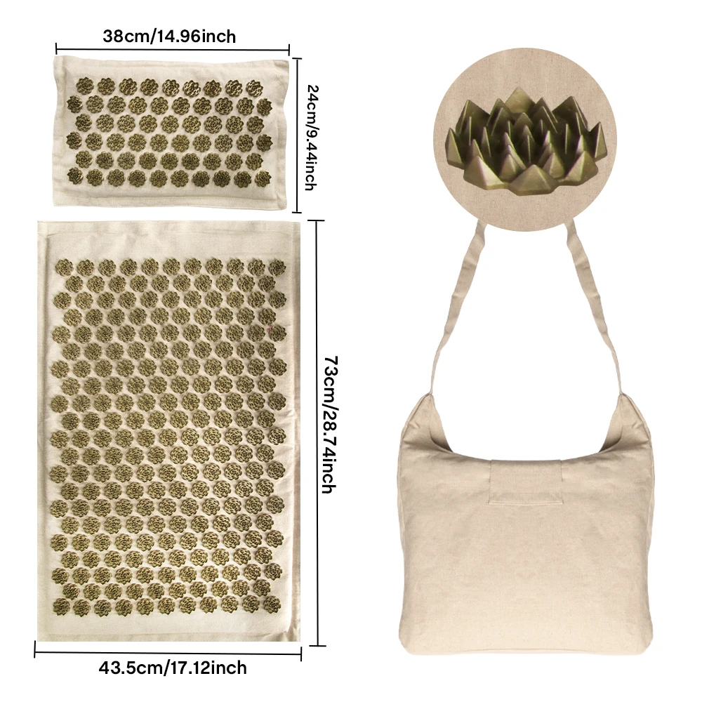 1. Коврик и подушка Акупрессура снимают стресс, боли, боли и мышечное напряжение, облегчение боли в шее и увеличивает кровообращение 2. Помогает при болях в спине, напряжении, жесткости, бессоннице, усталости и многих других условиях 3. Стимулирует точки в китайской традиционной медицине и активирует собственное производство двух веществ, помогает расслабиться.