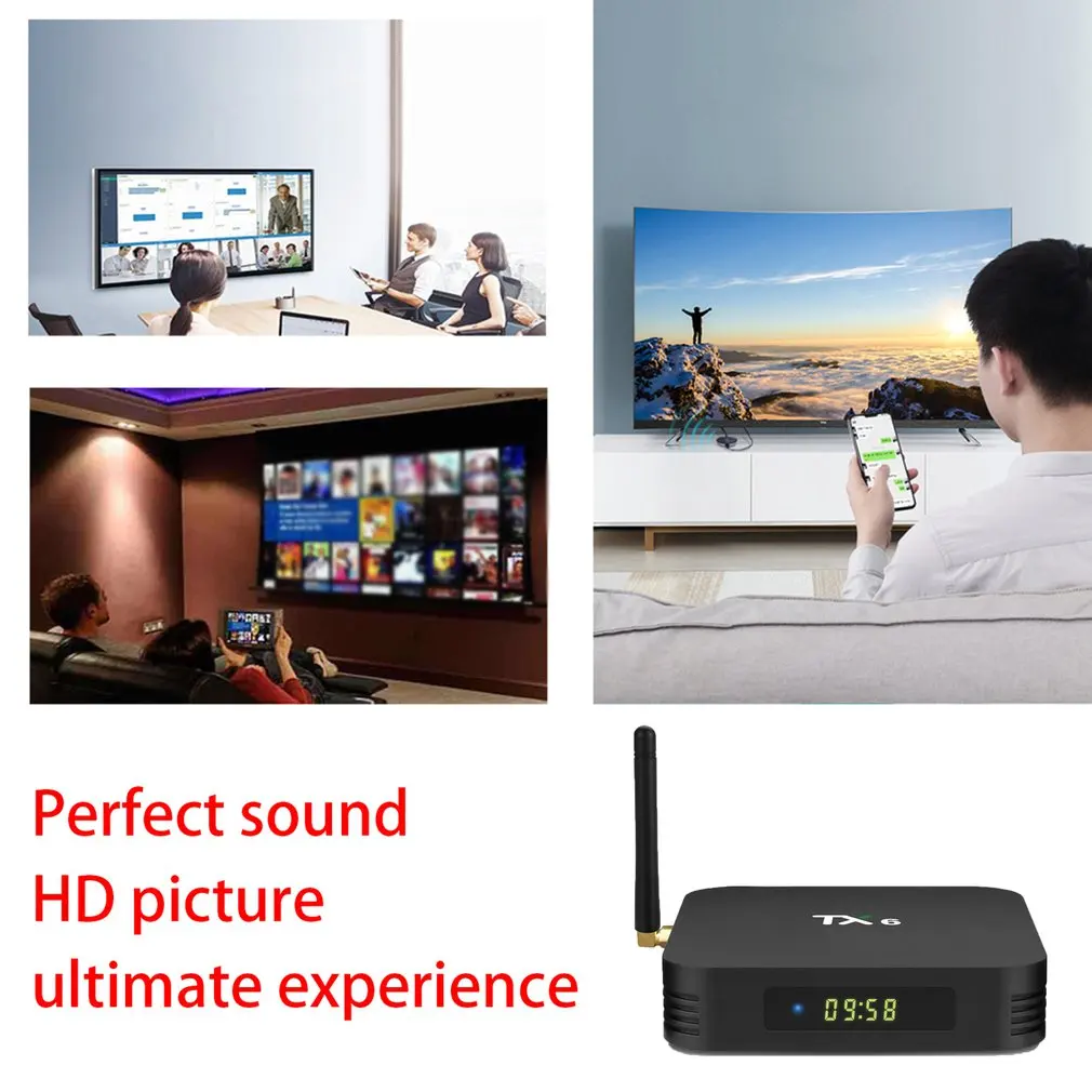Особенности: 1. Хорошее качество: Этот продукт изготовлен из высококачественных материалов, тонкое мастерство, очень хорошее качество и длительный срок службы. 2. Простая установка: этот продукт очень прост в установке, дополнительные инструменты не требуются, и процесс установки очень удобен. 3. Формат музыки: формат музыки включает в себя: MP1, MP2, MP3, WMA, OGG, AAC, M4A, FLAC, APE, AMR, RA, WAV 4. Красиво: Этот продукт сделан с функциональным изысканным мастерством, и внешний вид очень стильный и красивый. 5. Портативность: данный товар маломерит на размер и светильник по весу, что очень удобно носить с собой. Описание: Изготовлен из высококачественного материала, этот продукт очень практичныйTX6Мини wifi сетевой плеер. Характеристики: Процессор: Allwinner H6, до 1,5 ГГц, четырехъядерный процессор ARM Cortex-A53 Графический процессор: Mali-T720 Хост USB: 1 USB 3,0, 2 USB 2,0, поддержка u-диска и USB HDD Кард-ридер: кард-ридер TF Lan: RJ45 Ethernet порт (100 м) Форматы видео: 4K @ 60fps, H.26X, AVI, H.26X, VC-1, MPEG-2, MPEG-4, DIVD/DIVX, Real8/9/10, RM, RMVB, PMP, FLV, MP4, M4V , VOB, WMV, 3GP, MKV Формат музыки: MP1, MP2, MP3, WMA, OGG, AAC, M4A, FLAC, APE, AMR, RA, WAV Формат фото: JPEG/BMP/GIF/PNG/TIFF DLNA: Обмен файлами DLNA Языки: английский/французский/немецкий/испанский/итальянский и т. Д. 24 языка Объем памяти: 2G/16G, 4G/32G, 4G/64G (опционально) Тип: 2,4 ГГц один Wi-Fi. 4 ГГц и 5 ГГц двухъядерный процессор Wi-Fi + беспроводная автомобильная камера Посылка включает в себя: 1 комплект * ТВ-бокс