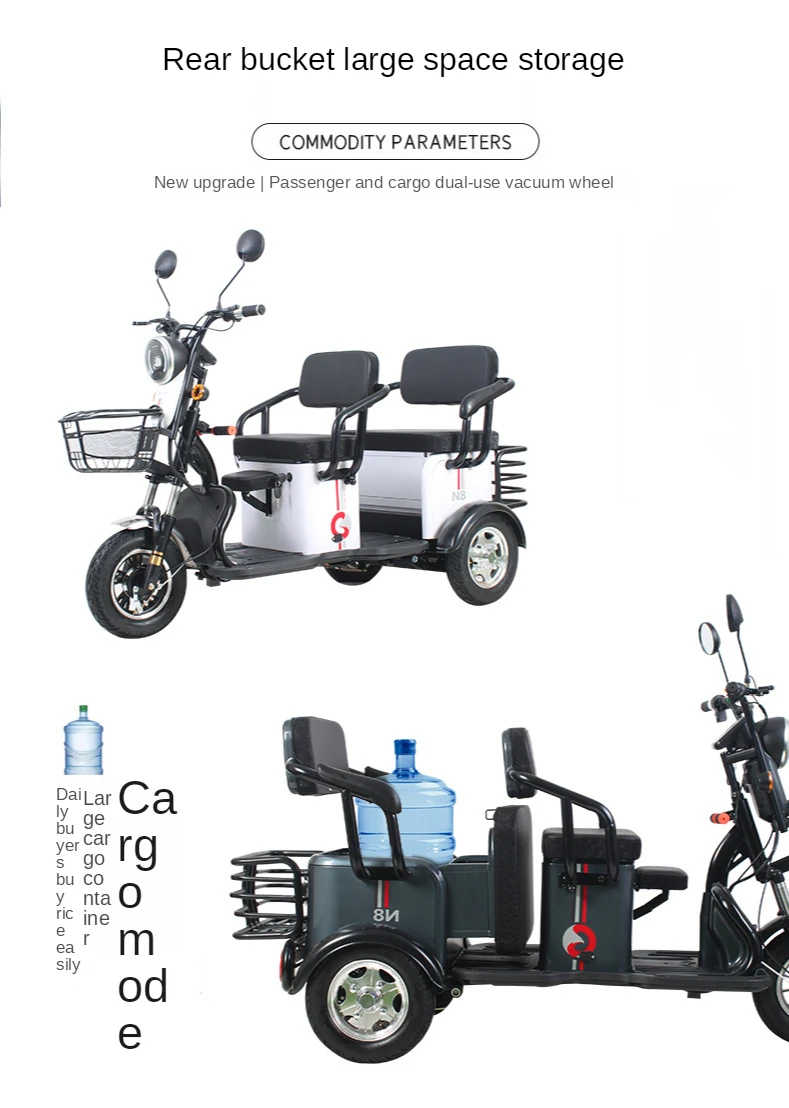 Электрический трехколесный велосипед 48V 13A скутер для сбора и высадки детей дома новый маленький пожилой пассажир и груз двойного назначения