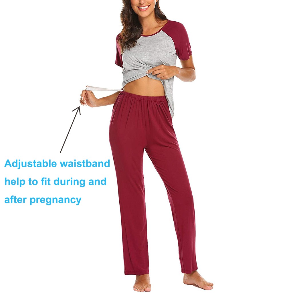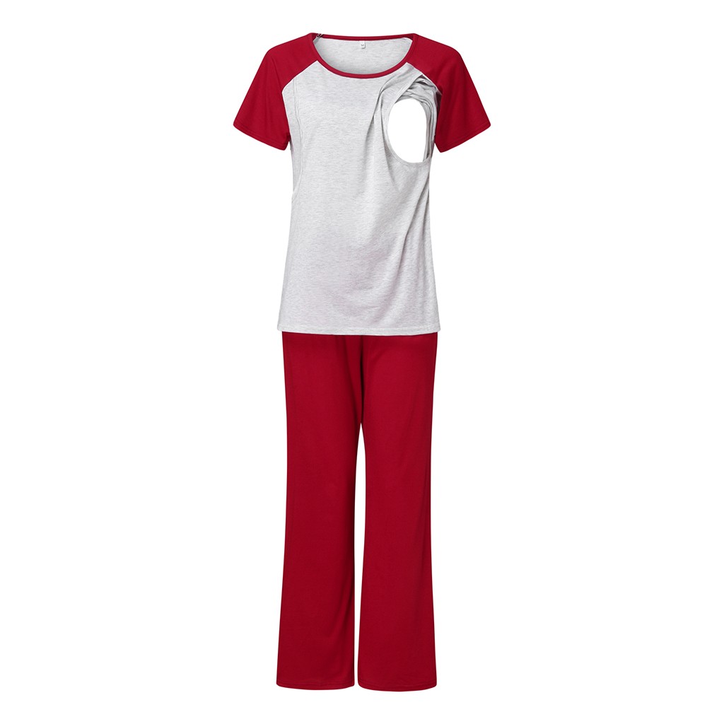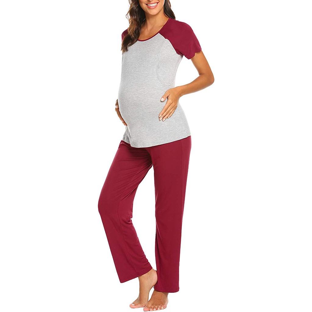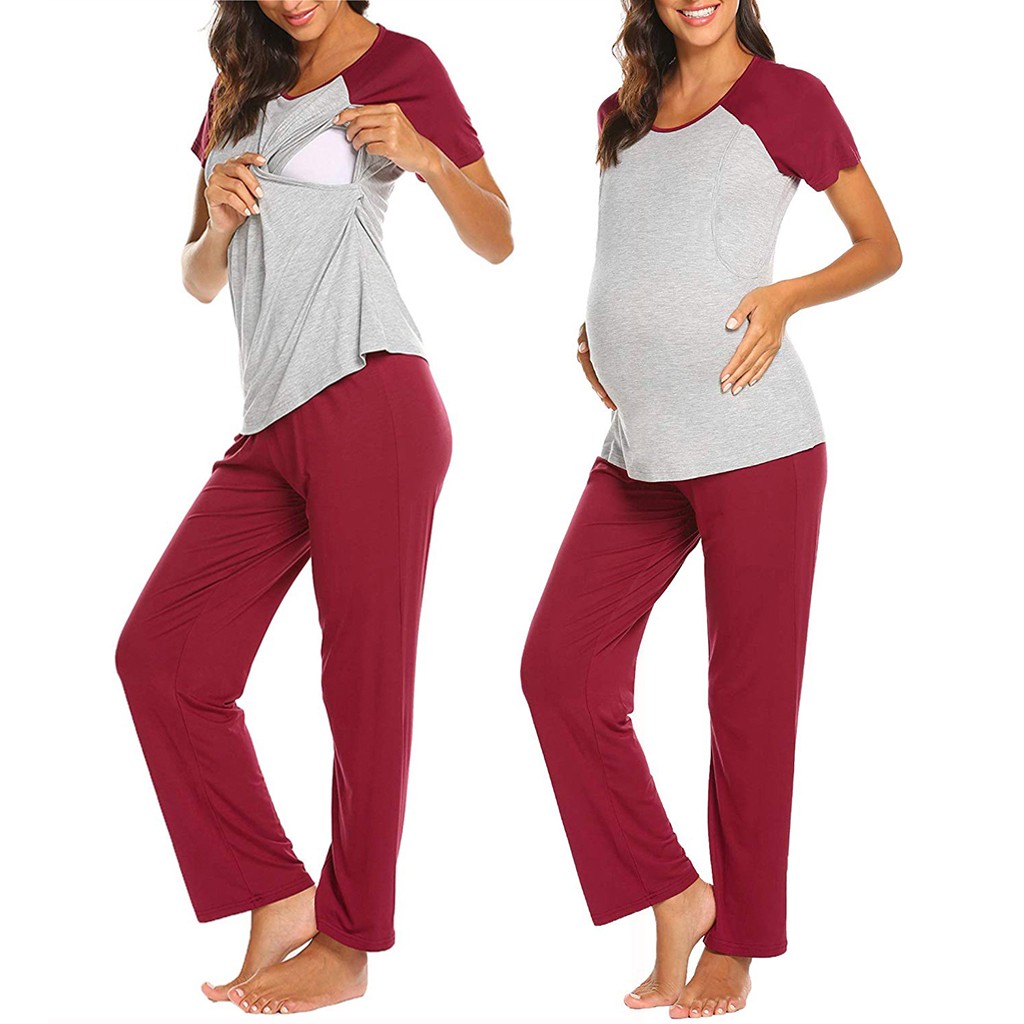 Женская футболка с короткими рукавами для беременных и кормящих детей, топы + штаны, пижамный комплект, костюм