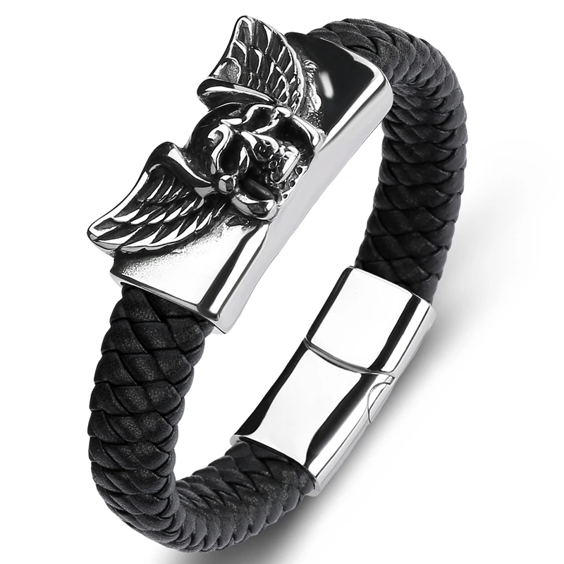 Condition: Brand New Material: Stainless Steel + Leather Color: as photo Quantity: 1 Piece Measurement: 165/185/200/210/220mm(Inner Girth),12mm(Width) We can customize the size for you, you can order notes or contact us. Note: The size of the bracelet is the Inner Girth, not the total length.